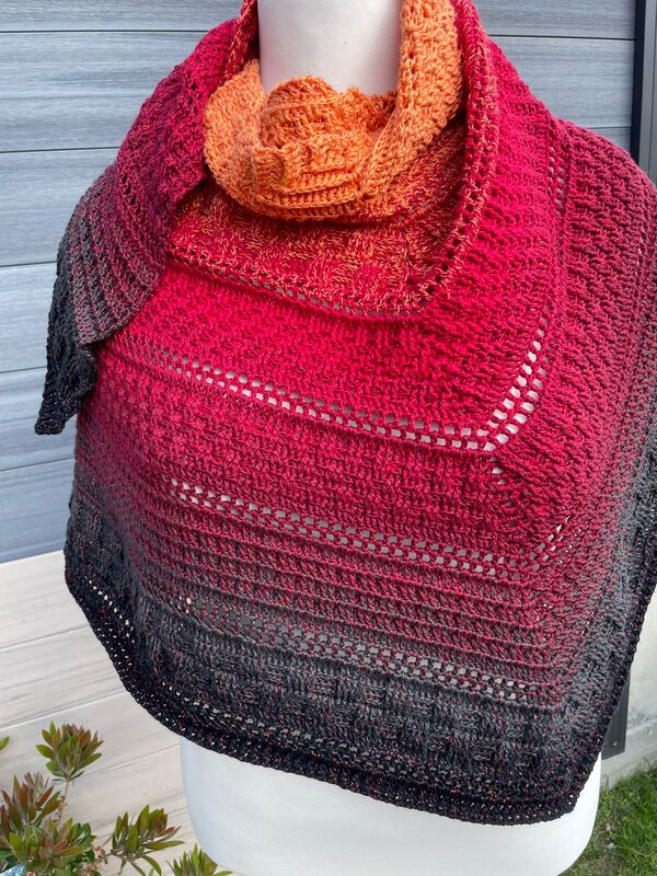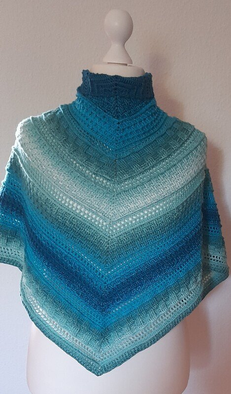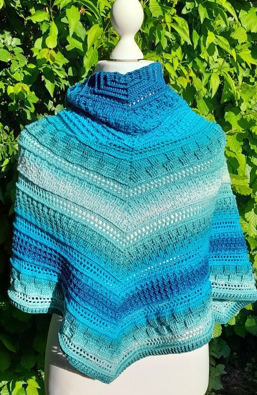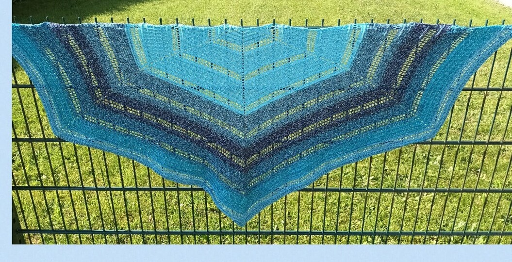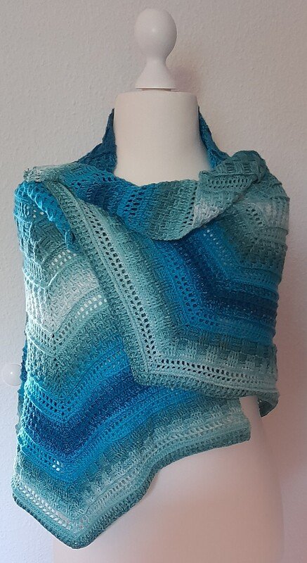Das fertige Tuch hat, je nach Häkelweise, eine Größe von ca. 170cm x 75cm