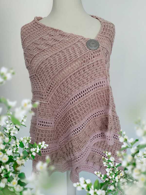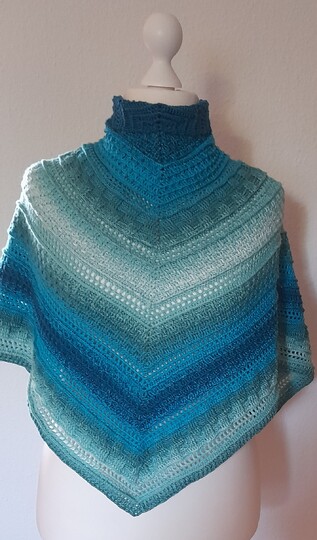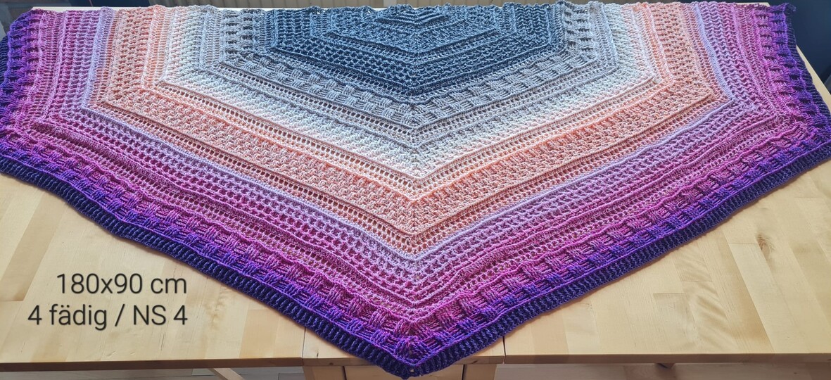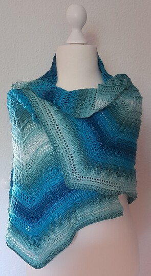 Der Verbrauch liegt je nach Häkelweise bei 1700-2200m Lauflänge. Das Tuch kann nach jedem Muster beendet und auch verlängert werden.