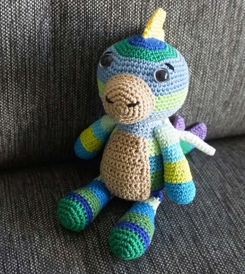 Hallo liebe Häkelgemeinschaft, ich freue mich, euch meinen neuesten gehäkelten Drachen vorzustellen, den ich liebevoll "Kunterbunt" getauft habe.