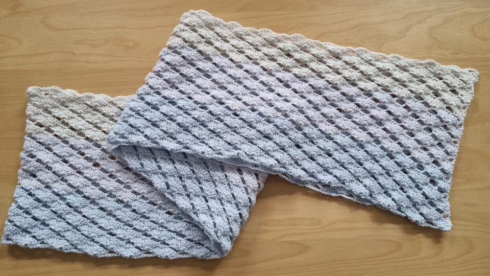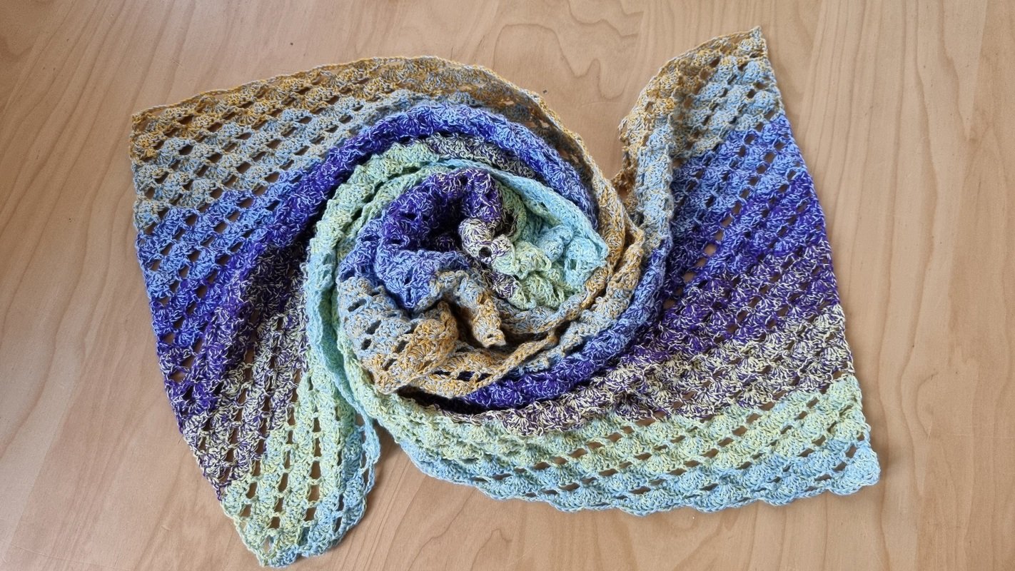 Ich biete hier die Anleitung zu meinem Schal im "shell Strips"-Muster an. Die Datei enthält eine schriftliche Anleitung sowie eine Häkelschrift für 3 Varianten des Schals: