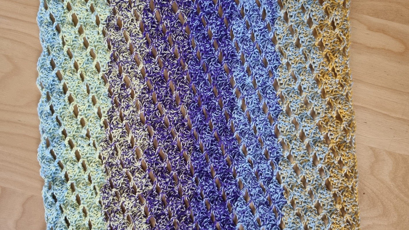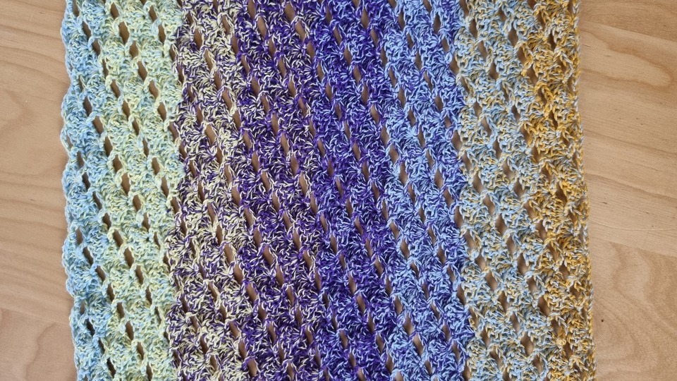 Verwendete Maschen: Kettmasche, Luftmaschen, Stäbchen, feste Masche