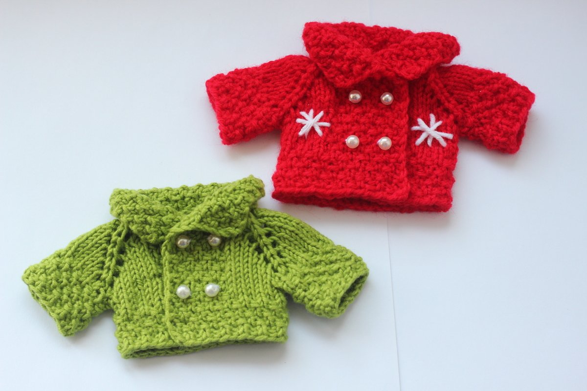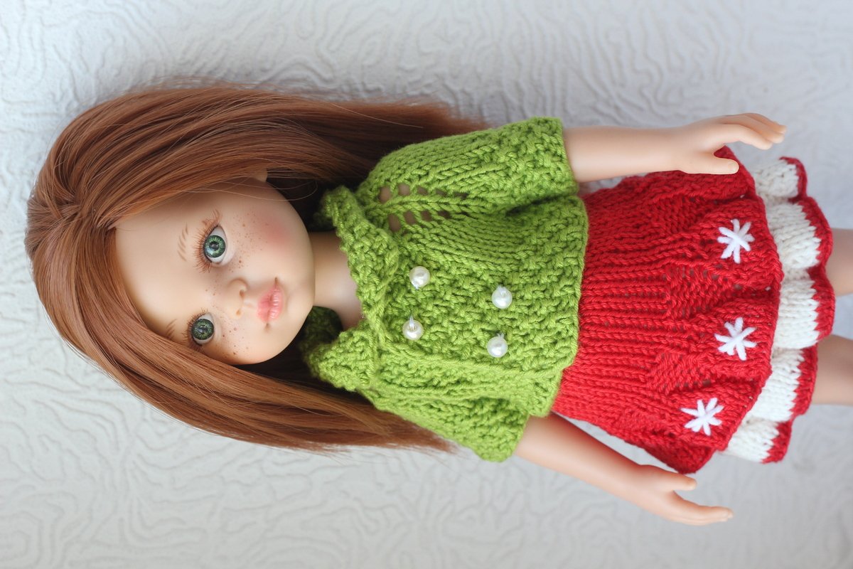 Gestricktes Puppenjacke und Rock mit Rüschen in modischen Designs dürfen im Puppenkleiderschank nicht fehlen! Das Jäckchen ist von oben nach unten gestrickt. Der Rock ist von unten nach oben ohne Naht gestrickt. Ein ideales Geschenk für die Tochter, Nichte, Enkelin oder auch nur für eine kleine Freundin.