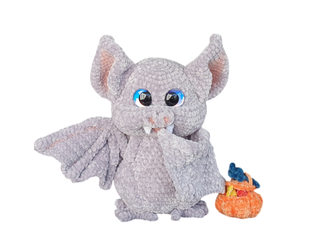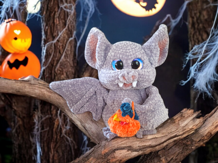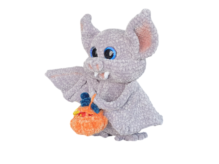 Mit Hilfe dieser detaillierten und illustrierten Schritt-für-Schritt-Anleitung kannst Du ganz einfach eine niedliche, freundliche und flotte Fledermaus häkeln. Da Frouli Süßigkeiten über alles liebt, kann er nicht widerstehen, an Halloween mit den Kindern auf Süßes oder Saures-Tour zu gehen. Er hat sogar den passenden Kürbiskorb dabei. Auch als Dekoration an der Haustür oder am Fenster macht Frouli eine gute Figur. Er wird sicher viele beeindruckte Blicke von Passanten auf sich ziehen.