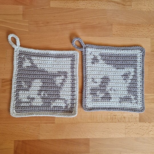 Diese Topflappen sind der Klassiker unter den gehäkelten Topflappen. Sie schützen die Hände nicht nur vor z.B. zu heißen Topfgriffen, sondern sie verschönern auch jede Küche. Gleichzeitig können sie auch als Untersetzer verwendet werden.