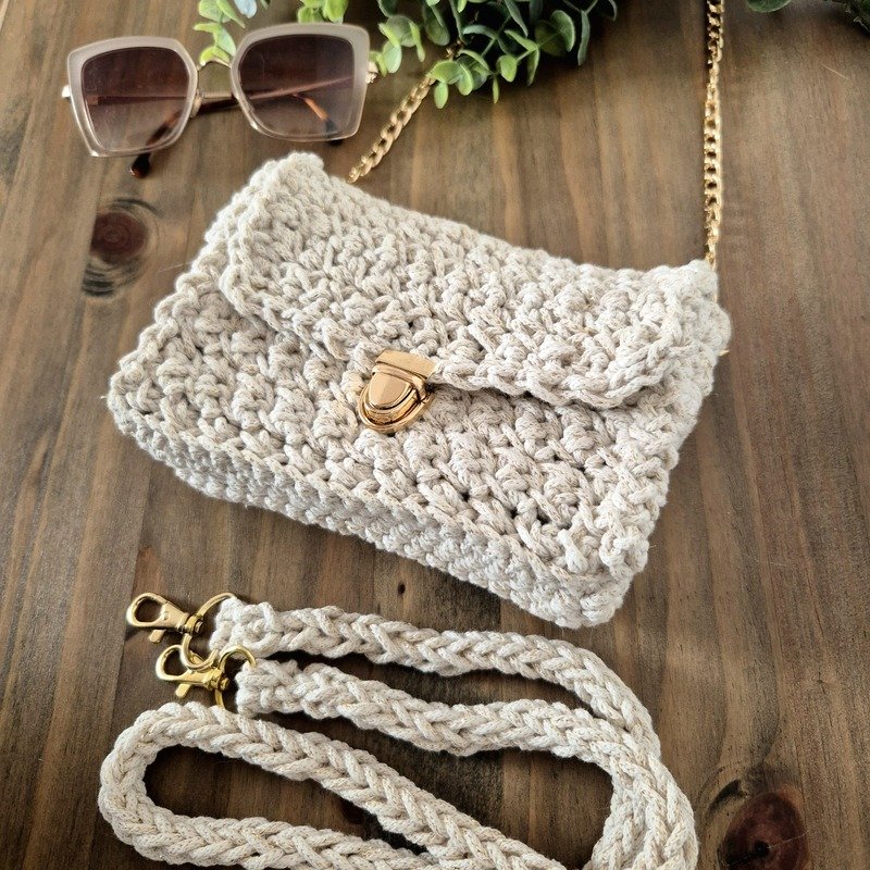• Wenn sie den Schultergurt selber häkeln, dann brauchen sie noch 2 D-Ringe mit Karabiner