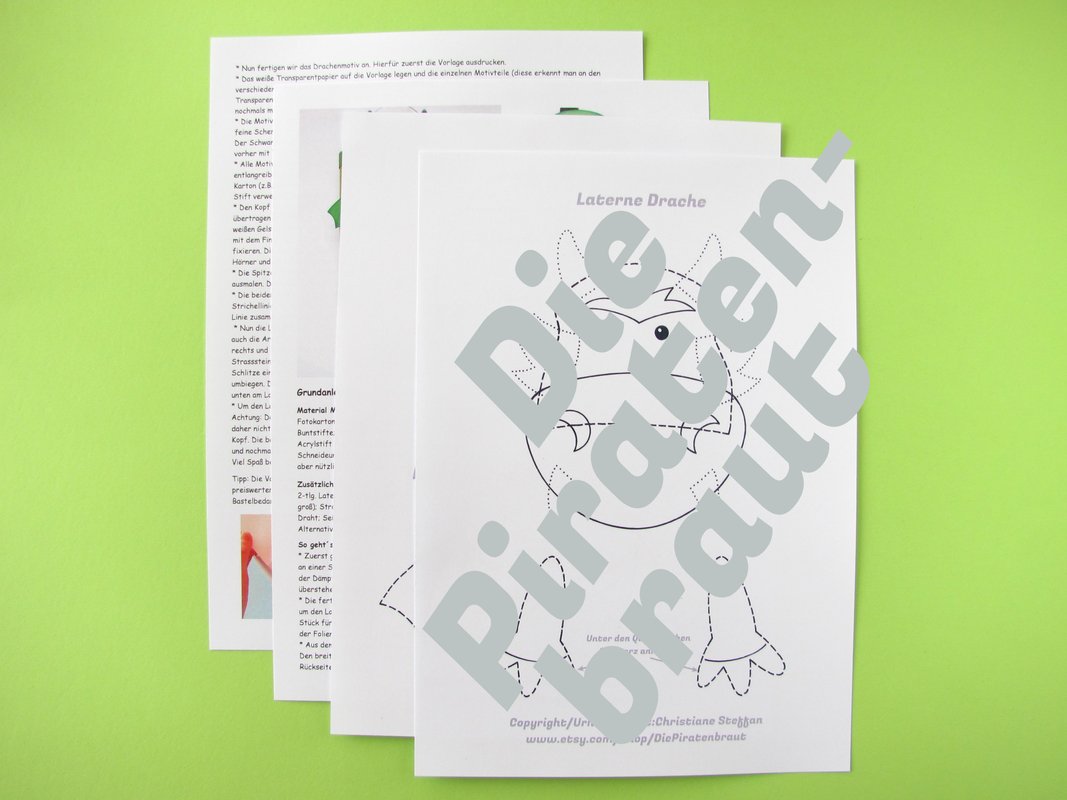 Wer möchte nicht einen coolen Drachen am Martinsumzug dabei haben? In diesem Download findet Ihr die Vorlagen sowie die Anleitung in deutscher Sprache für die Drachenlaterne. Die klassische Laternenschachtel-/Käseschachtellaterne ist stabil aber dennoch leicht. Das besondere Detail ist der kecke Schwanz, der auf dem Schachtelboden angebracht ist und den Drachen erst komplett macht.