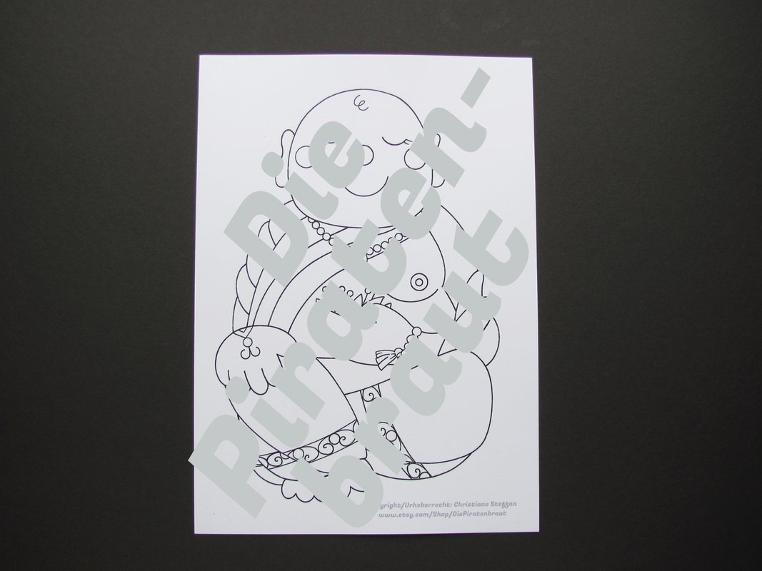 Ooommm! Ein zufriedener, properer Buddha zum Ausmalen und Gestalten. Die Download-Vorlage kann man für Fenster oder Wand nutzen und einfarbig als Statue oder kunterbunt ausmalen. Auch als Fensterbild in der Öltechnik machbar.