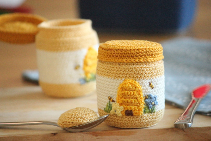 Häkel dir ein Glas cremigen Blütenhonig als Ergänzung für Spielküche oder Kaufladen der Kids. Es ist so entworfen, dass der Deckel geöffnet und eine kleine Portion Honig entnommen und dort auch bequem wieder verstaut werden kann. So macht das Spielen noch mehr Spass!
