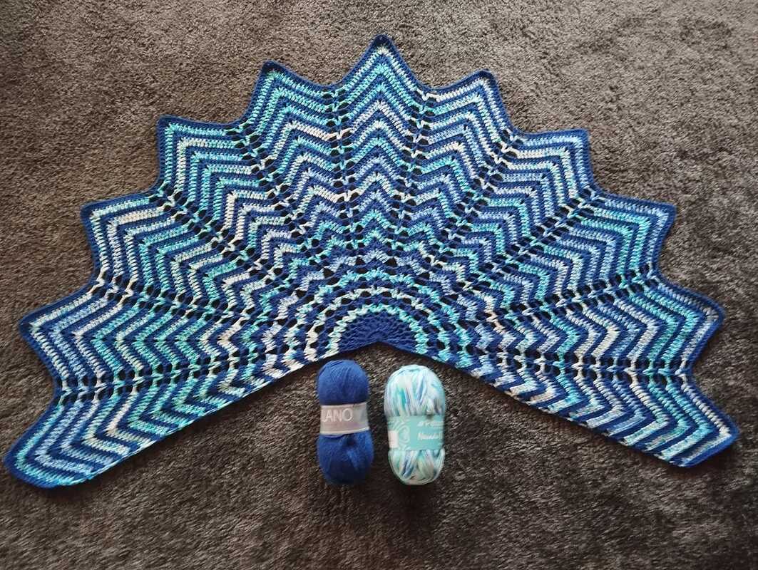 Die Größe ist individuell anpassbar. ist dir das Tuch zu klein, häkelst du weiter. Wenn die richtige Größe erreicht ist - oder das Garn verbraucht, hörst du auf.