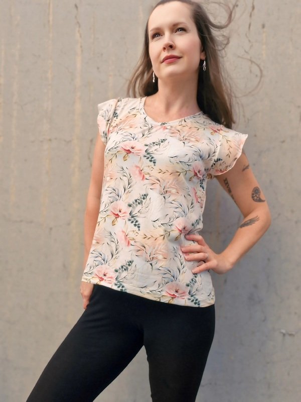 Es kann mit dehnbaren & nicht dehnbaren Stoffen genäht werden. Musselin ist nur für erfahrene Näherinnen zu empfehlen.