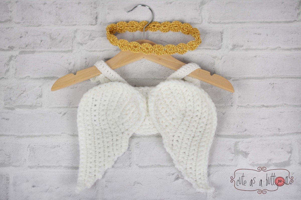 Bebilderte Schritt-für-Schritt-Anleitung zum Häkeln der Engelsflügel und Heiligenschein.