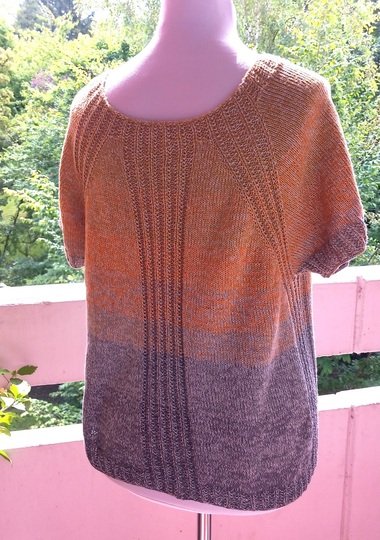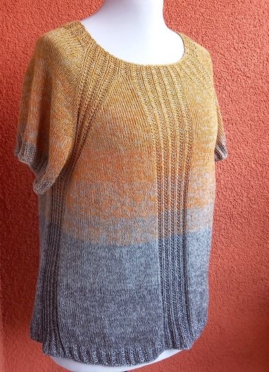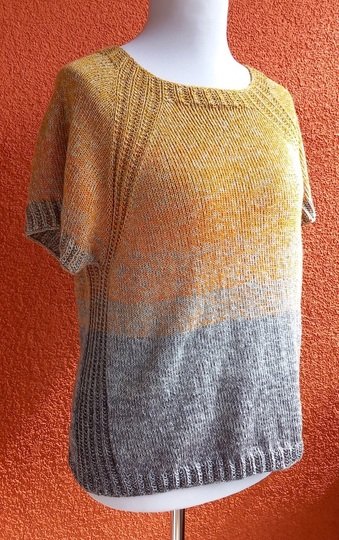 Alternativ könnt ihr z.B. das „übliche“ vierfädige TVU- Farbverlaufsgarn (50 % Baumwolle und 50 % Polyacryl) verwenden oder auch jedes andere relativ glatte Garn, das etwa auf die entsprechende Maschenprobe kommt: bei glatt rechts 20-25 Maschen pro 10 cm.