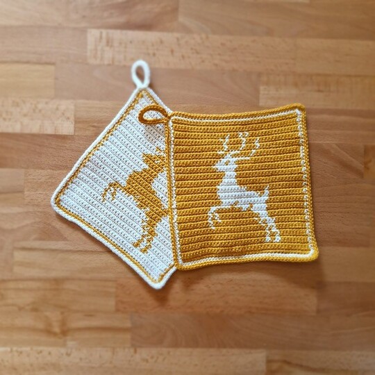 Diese Topflappen sind der Klassiker unter den gehäkelten Topflappen. Sie schützen die Hände nicht nur vor z.B. zu heißen Topfgriffen, sondern sie verschönern auch jede Küche. Gleichzeitig können sie auch als Untersetzer verwendet werden.