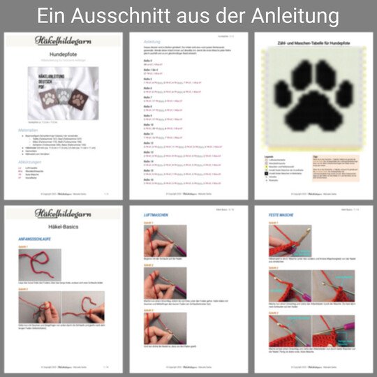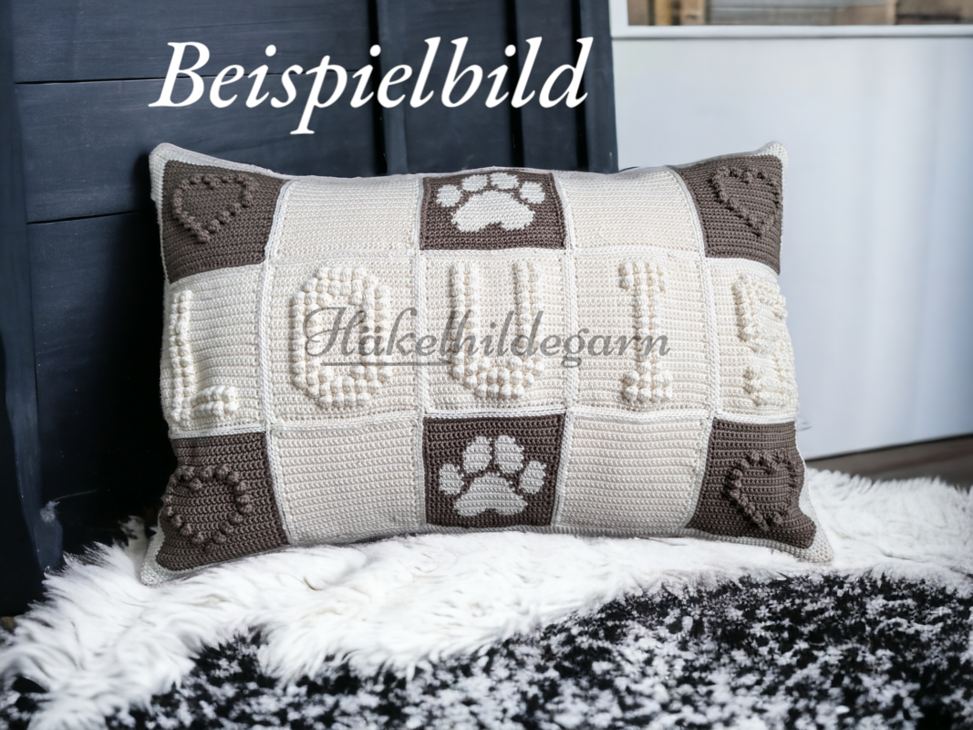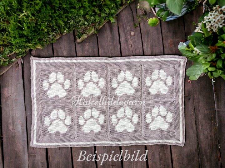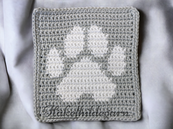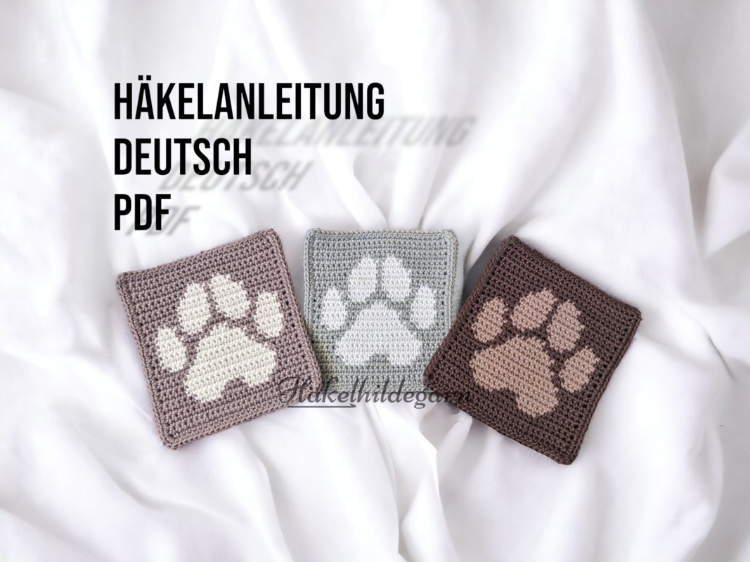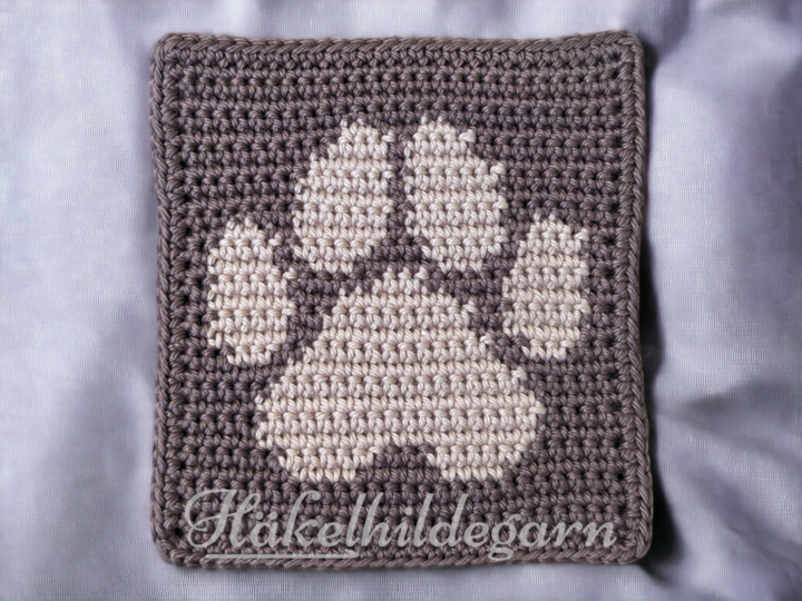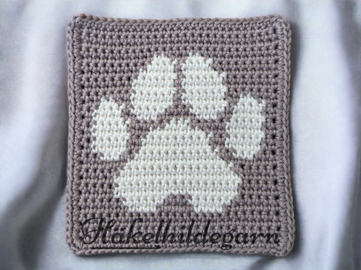 Häkelanleitung (22-seitige PDF-Datei) für eine Hundepfote im Quadrat (ca. 11 cm × 11 cm). Aus mehreren fertigen Quadraten kannst du z.B.: ein Kissen, eine Hundedecke oder einen Fressnapfuntersetzer herstellen. Model für die Pfote war mein Labrador Retriever Mr. Watson :)