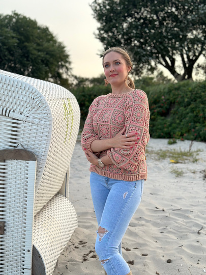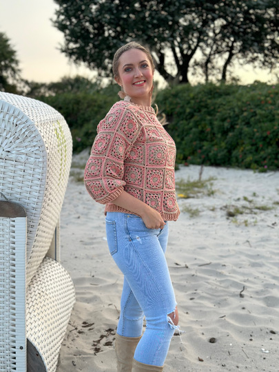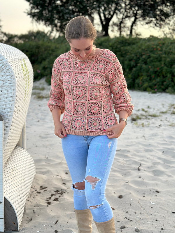 Hier bekommst Du eine Anleitung für die schöne, einfache und einzigartige 2in1-Granny-Häkeljacke/Häkelpulli.