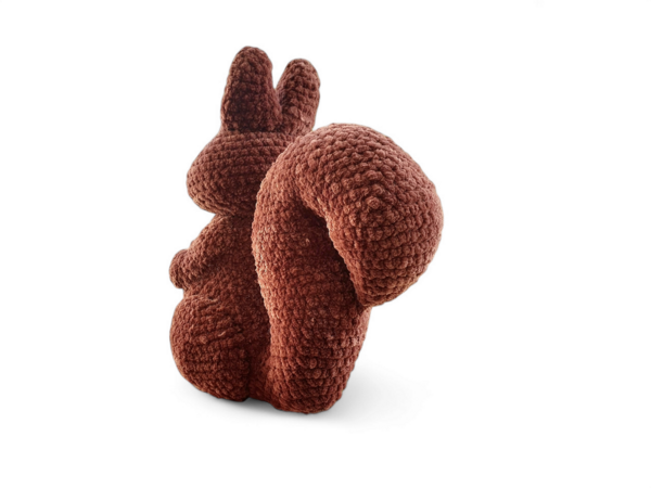 Eine Anleitung - zwei Figuren. Mit Hilfe dieser detaillierten und reich bebilderten Schritt-für-Schritt-Anleitung kannst Du ganz einfach ein niedliches Eichhörnchen aus Chenille oder Baumwolle häkeln. Der Kopf des Eichhörnchens ist mit einem Gelenk verbunden und kann daher in alle Richtungen gedreht werden. Das gibt dem Eichhörnchen noch mehr Charme. Wenn es aus Chenille gehäkelt ist, ist es besonders weich und kuschelig. Aber auch in Baumwolle macht das Eichhörnchen eine gute Figur.