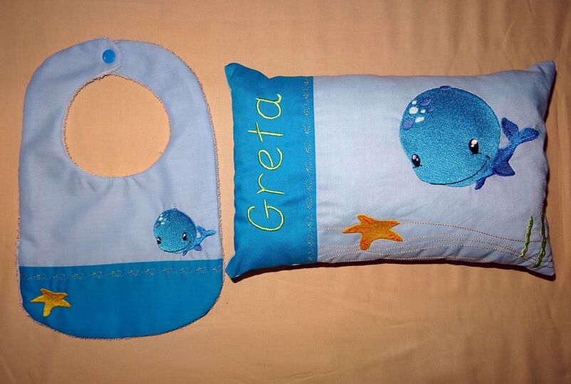 Stickdatei - Kissen und Lätzchen SET ITH - mit allerliebstem Wal