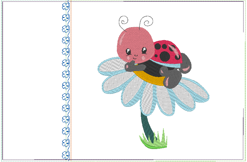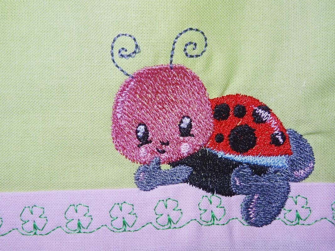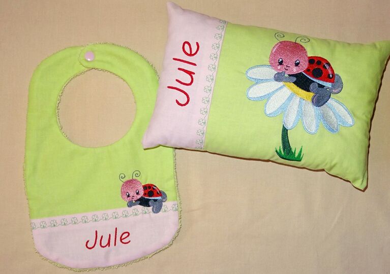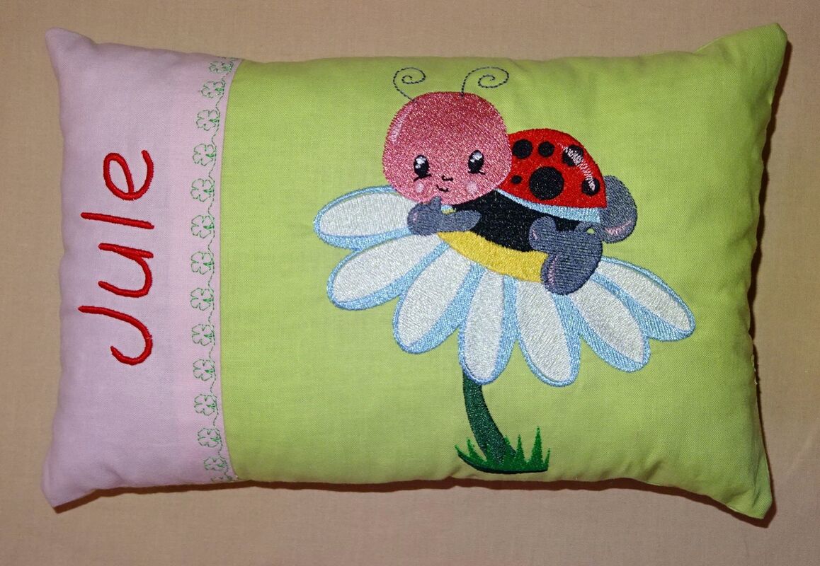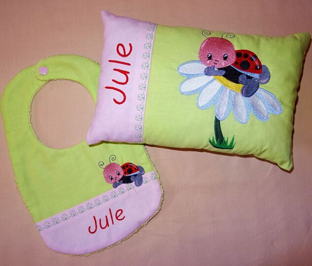 Stickdatei - Kissen und Lätzchen SET ITH - mit allerliebstem Marienkäfer auf der Blume