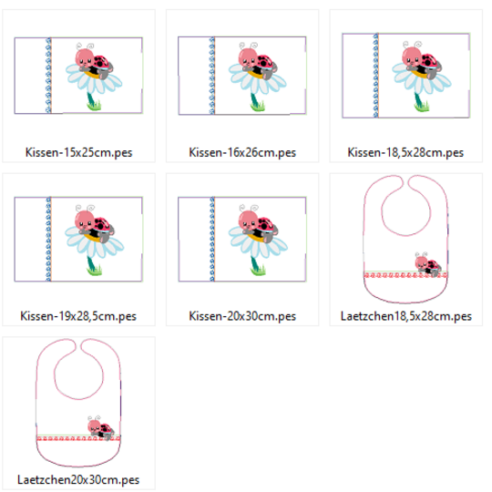 ACHTUNG: Es handelt sich hier nicht um fertige Lätzchen oder Kissen sondern um Stickdateien für eine Stickmaschine. Um die Stickerei herzustellen wird also eine Stickmaschine benötigt!