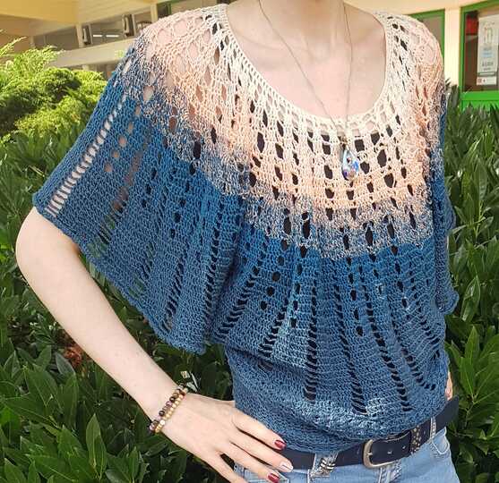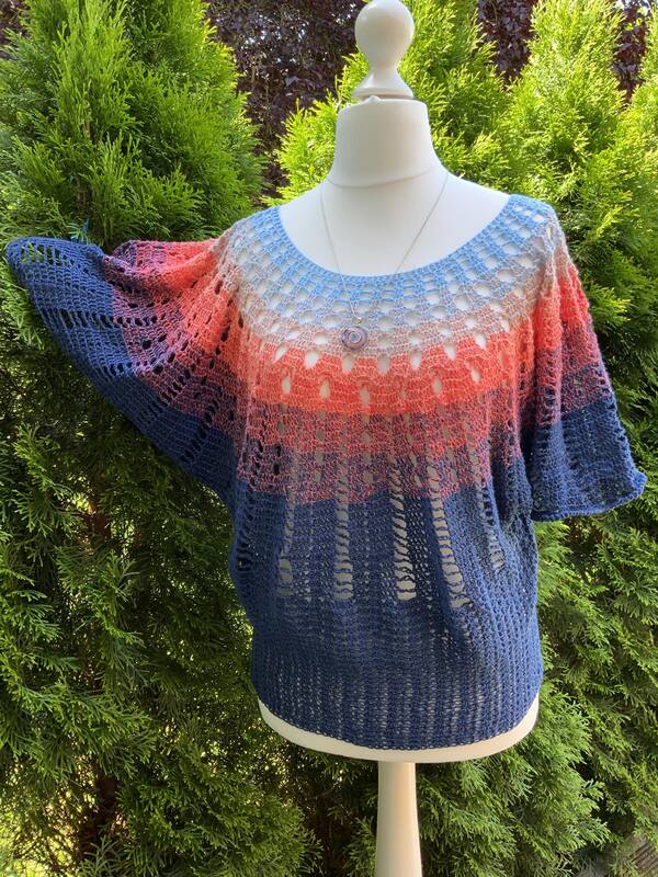 Mit dieser Anleitung kannst du dir einen hübschen Pulli mit Fledermausärmel häkeln.