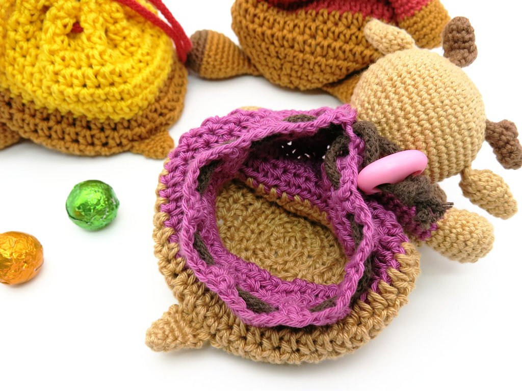 Länge und Dicke der Kordel, die Größe der Sicherheitsaugen und die Größen der Häkelnadeln müssen dann allerdings angepasst werden.