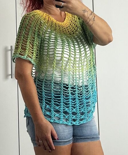 Als Profihäkler/in hat man mit Airy blitzschnell ein neues zeitlos schönes Oberteil.
