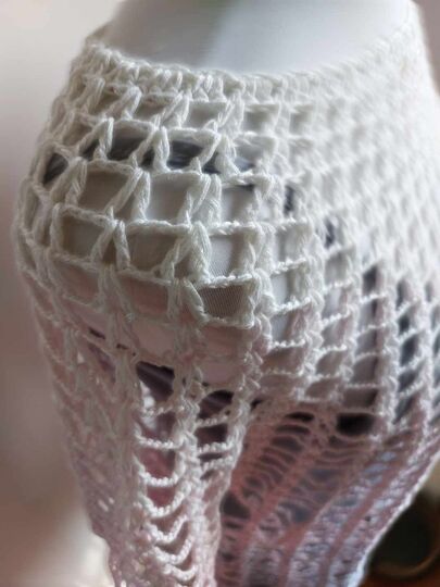 Airy wird von oben nach unten in Runden gehäkelt. Es wird mit einer Rundpasse begonnen.
