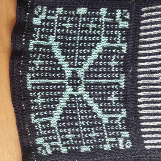 Als Maschenarten müssen lediglich rechte und linke Maschen beherrscht werden, sowie man muss sich bewusst sein, dass man immer mit 2 Fäden und Farben gleichzeitig arbeitet.