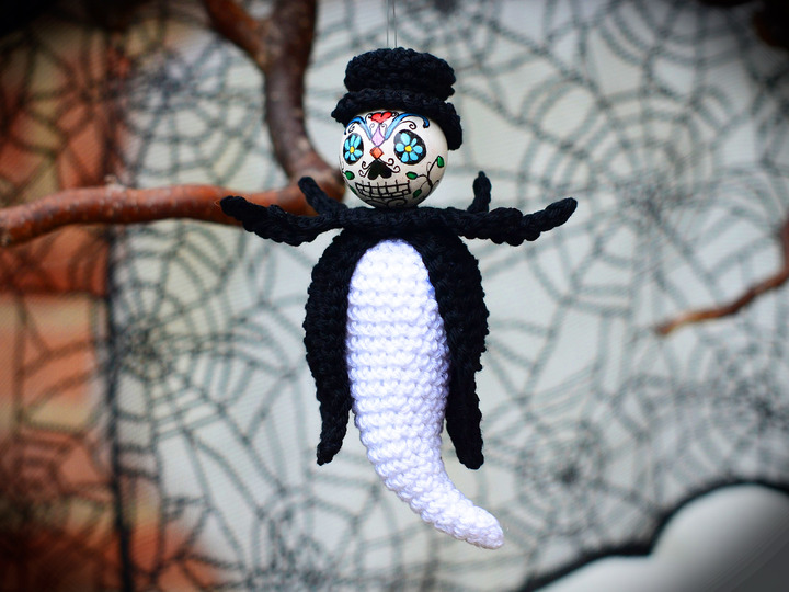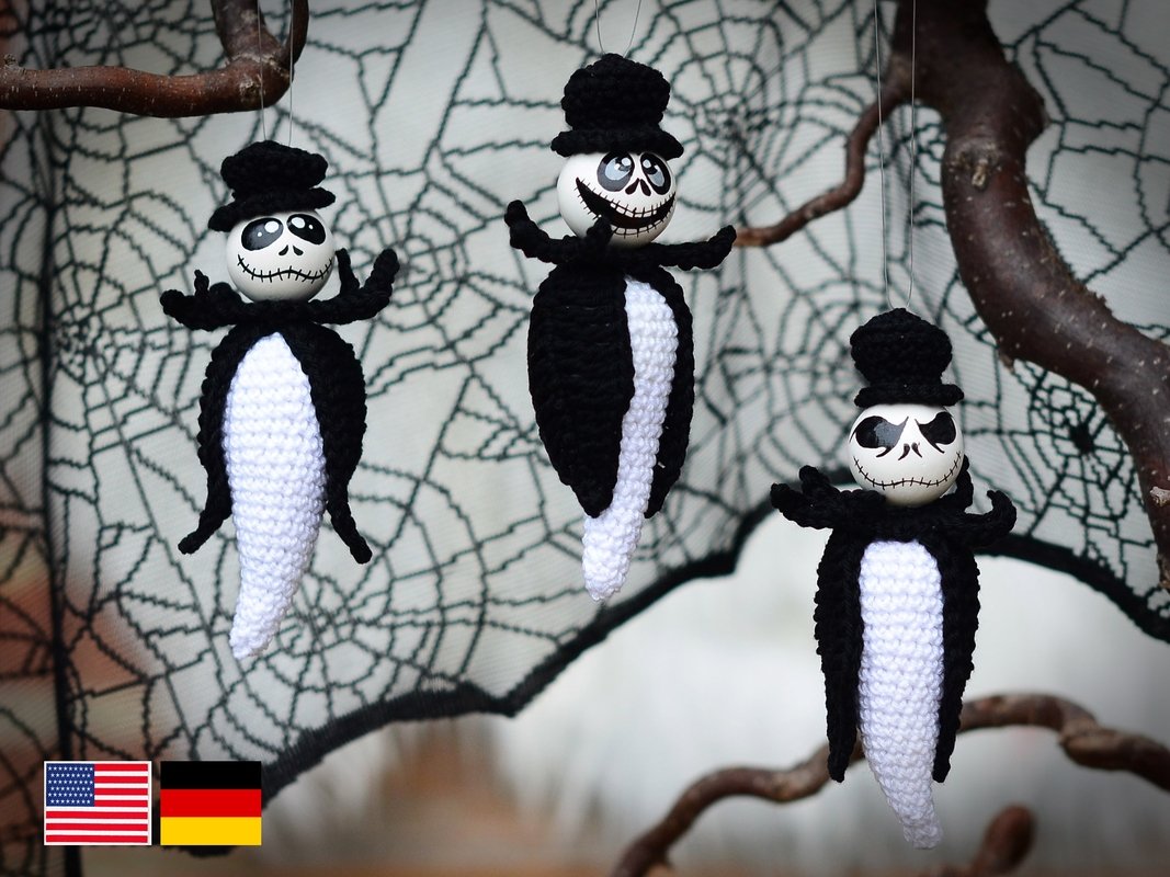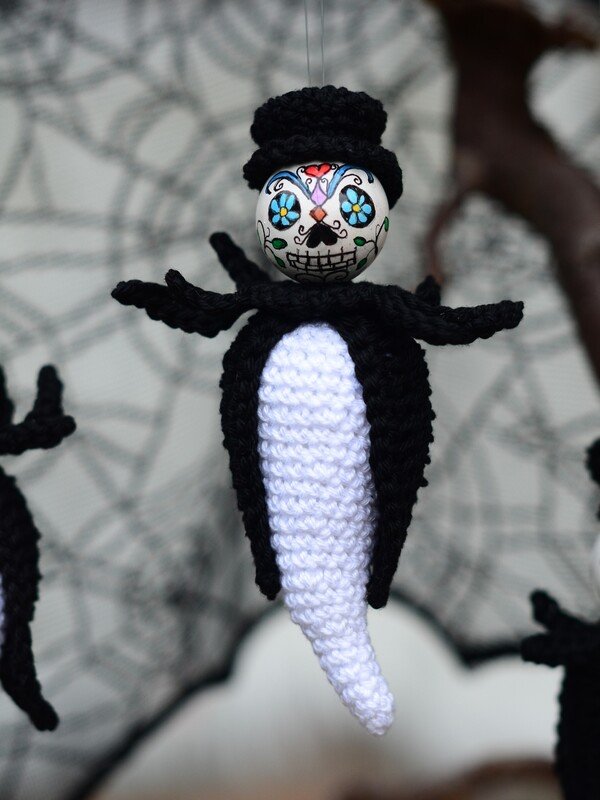 Mit dieser Anleitung zeige ich dir, wie du diese gruseligen Gesellen zum Aufhängen häkeln kannst.