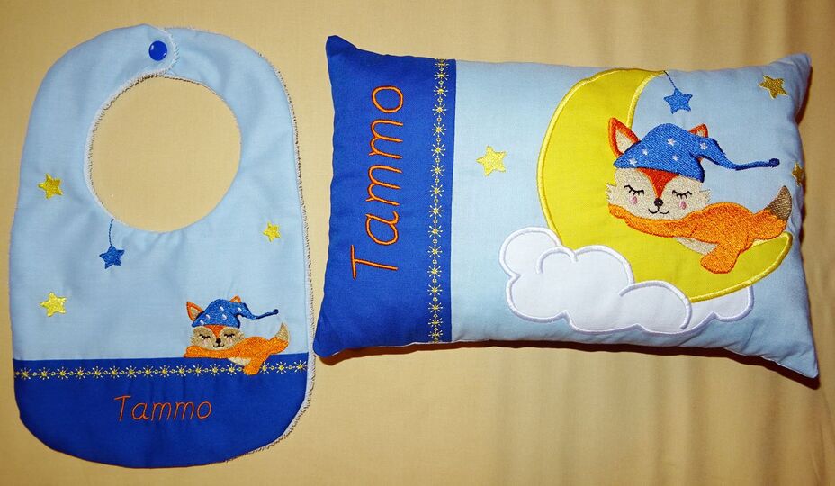 ACHTUNG: Es handelt sich hier nicht um fertige Lätzchen oder Kissen sondern um Stickdateien für eine Stickmaschine. Um die Stickerei herzustellen wird also eine Stickmaschine benötigt!
