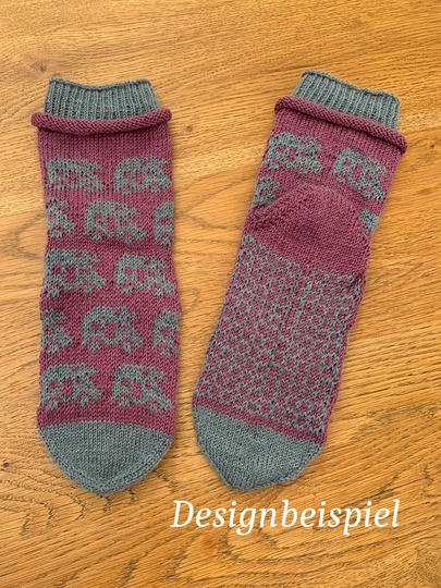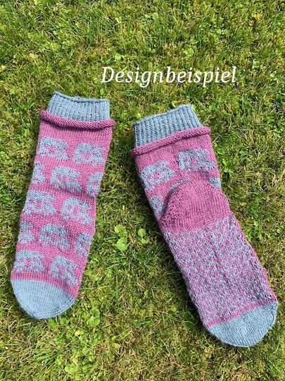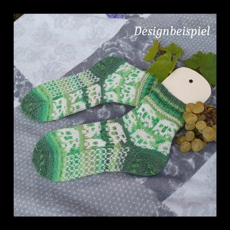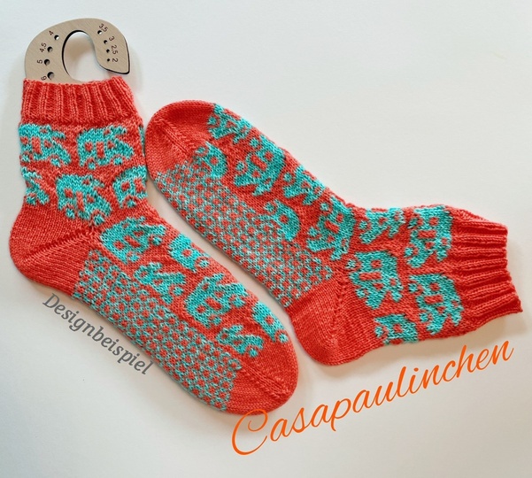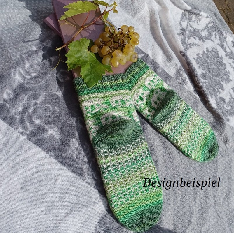 Die Anleitung beinhaltet keine Ferse, Spitze und Bündchen. Die strickst du in deiner bevorzugten Variante.