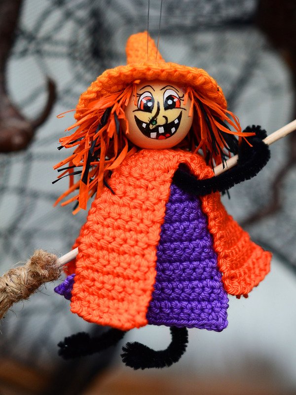 Häkelanleitung fliegende Hexen für Holzkugeln 30 mm