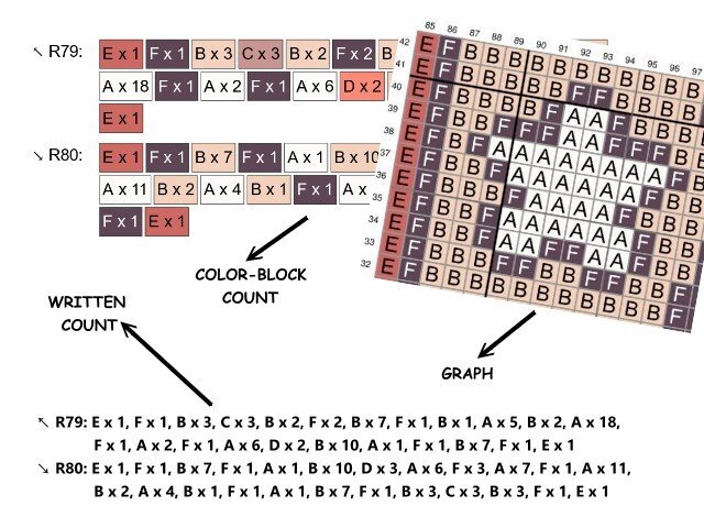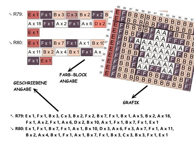 -farbige Zahlen-Blöcke für jede Zeile für C2C-Technik