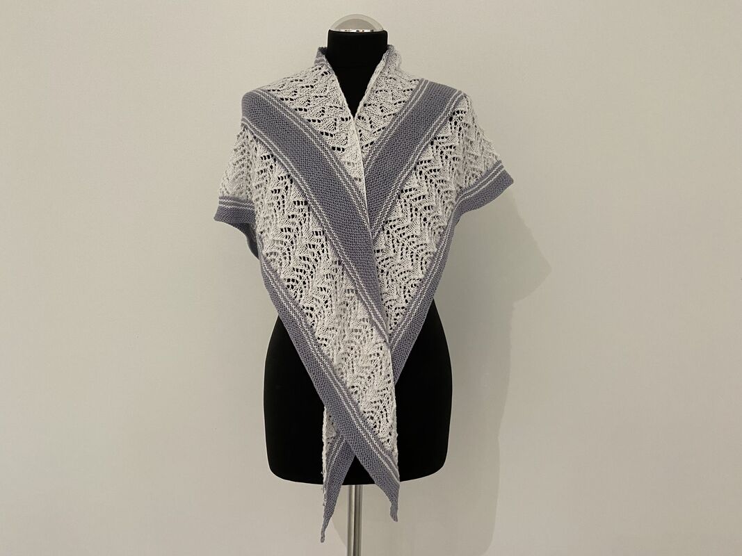 Der Name „Divi“ stammt aus dem Lettischen und bedeutet „zwei“ – ein passender Titel für dieses elegante Tuch, das in seinem Originaldesign mit zwei harmonisch aufeinander abgestimmten Farben gestrickt wird. Doch auch einfarbig oder mit einem schönen Farbverlaufsgarn entfaltet „Divi“ seinen ganz eigenen Charme.