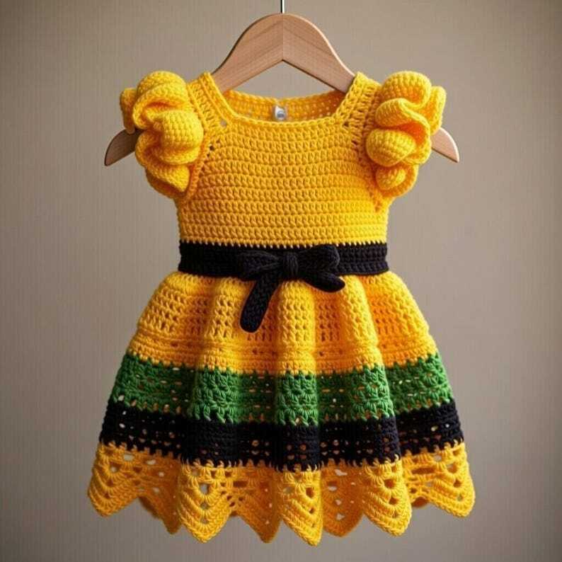 Erstelle ein wunderschönes, handgefertigtes Outfit mit dieser Häkelanleitung für ein Baby-Kleid von nontycrochet. Dieses elegante, gehäkelte Spitzenkleid für Babys ist anfängerfreundlich und enthält detaillierte Schritt-für-Schritt-Anleitungen.