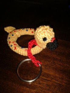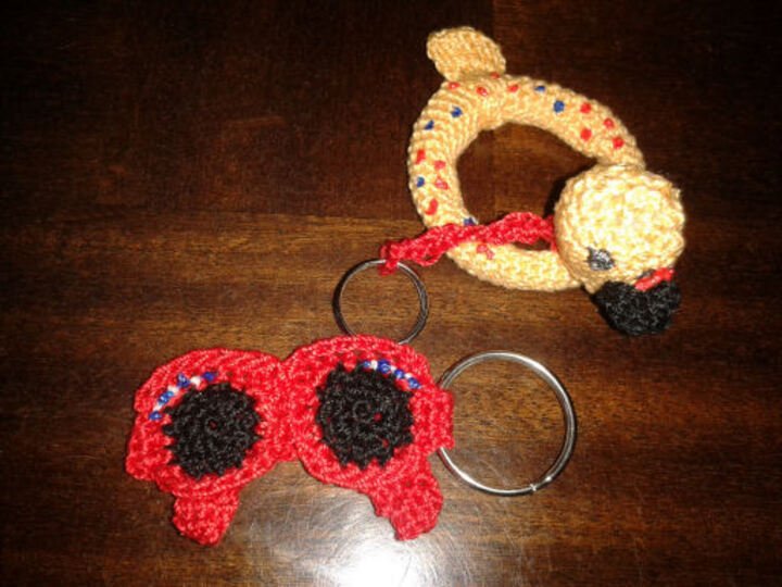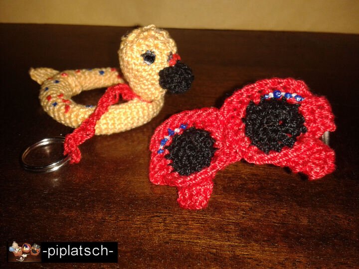 Wolle, Basteldraht und Schlüsselanhänger.