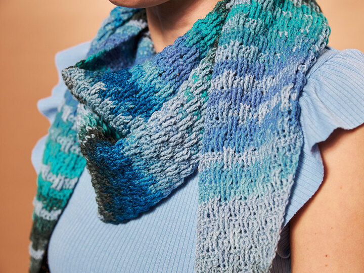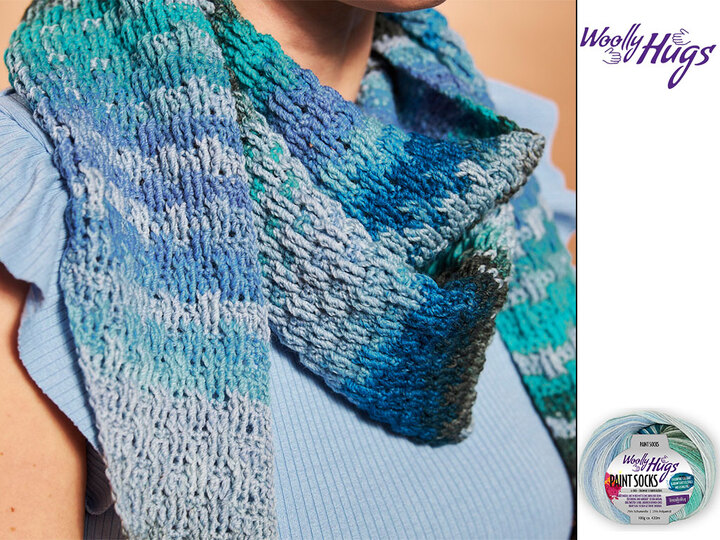 Lust auf ein farbenfrohes Häkelprojekt? Mit dieser Anleitung verwandelst du die 'Woolly Hugs PAINT SOCKS' in ein flaches Tuch voller Überraschungen. Tiefergestochene Maschen bringen Abwechslung in dein Häkeln und erzeugen ein sehr interessantes Muster.