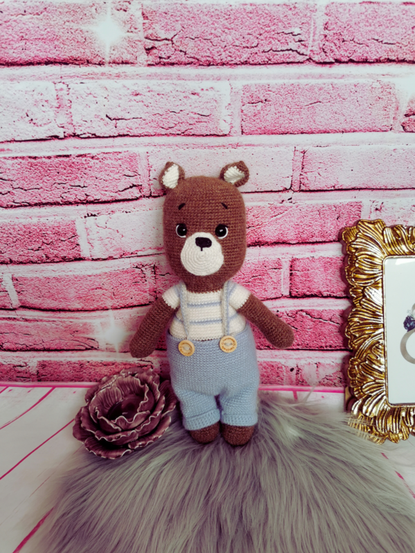 Fertige Größe: 26 cm, gehäkelt mit Alpaka Nr. 607 Hellbraun Mix, Alpaka Nr. 6205 Hellblau, Alpaka Nr. 1101 Weiß, Alpaka Nr. 9020 Hellperlgrau Mix, Alpaka Nr. 1101 Weiß, Alpaka Nr. 9020 Hellperlgrau Mix, Alpaka Nr. 9028 Zitronenkuchen, Safran Nr. 16 Schwarz und Häkelnadel 2,0 mm.