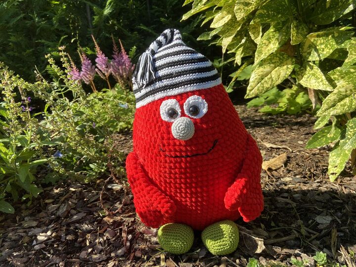 Monster „Berry“ und seine Zipfelmütze sind unzertrennlich. Egal, ob beim Fotoshooting oder beim Knuddeln: ohne seine Mütze fühlt sich Berry, der seinen Namen von seiner roten Farbe hat, einfach nicht wohl.