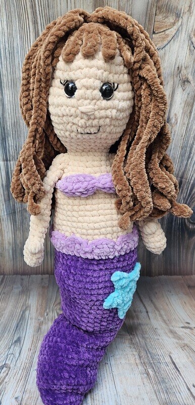 Tauche ein in die magische Welt der Meerjungfrauen mit dieser wunderschönen gehäkelten Meerjungfrau! Mit ihren Haaren, ihrem detailreichen Design und der liebevollen Gestaltung ist sie das perfekt Projekt für alle, die eine besondere Herausforderung suchen. Ob als großen Kuscheltier, Dekoration oder Geschenk - diese Meerjungfrau verzaubert jeden.