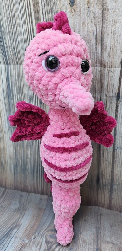 Tauche ein in die magische Unterwasserwelt mit diesem niedlichen Seepferdchen. Diese detailreiche und flauschige Figur ist das perfekte Projekt für Häkelfans und macht sich super als Kuscheltier, Deko oder Geschenk.