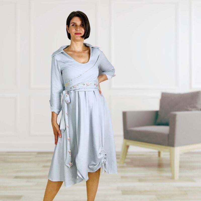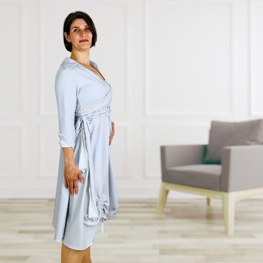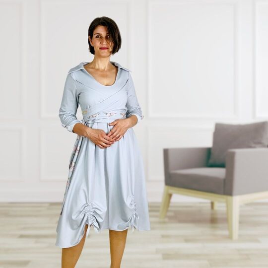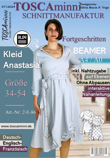 Mit dem Schnittmuster Anastasia nähst Du ein charmantes Kleid aus Jersey mit einem Wickeldesign im Oberteil, ideal für die kälteren Monate. Der Schnitt folgt einer A-Silhouette und besticht durch modische Raffdetails. Obwohl wir das Muster für erfahrenere Näher:innen empfehlen, ist die Anleitung benutzerfreundlich gestaltet und begleitet Dich detailliert durch jeden Schritt des Nähprozesses.