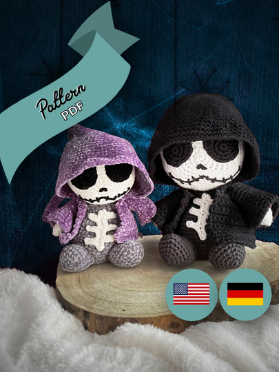 Als Horror-Fan weißt du, dass der Sensenmann nicht nur furchteinflößend sein kann, sondern auch etwas unwiderstehlich Faszinierendes an sich hat – genau wie diese Amigurumi Häkelanleitung! Mit meinem Horror Skull - Sensenmann kannst du dir deinen eigenen kleinen Boten des Jenseits häkeln, der irgendwo zwischen schaurig und niedlich angesiedelt ist.
