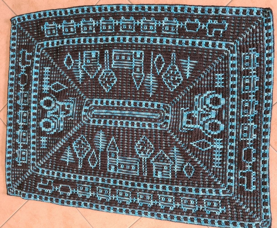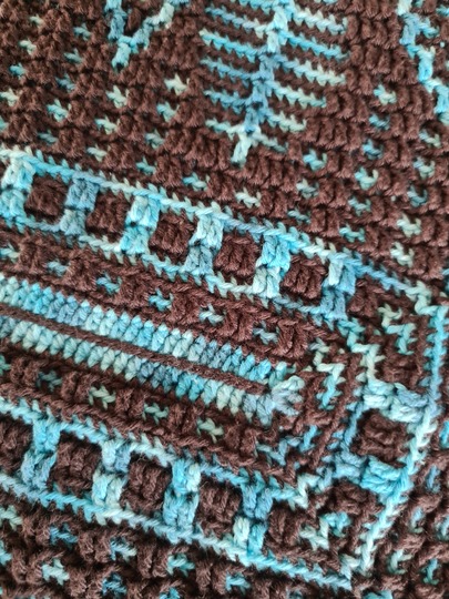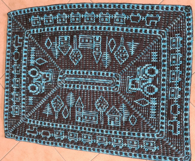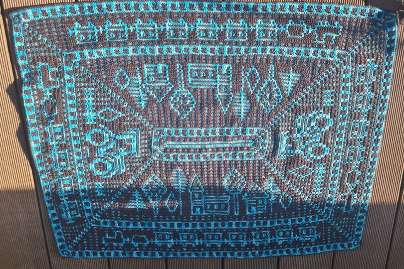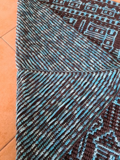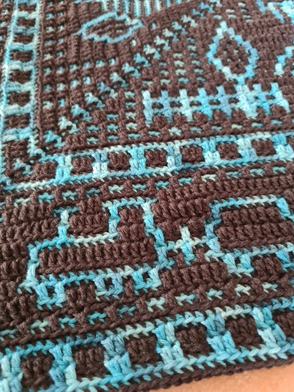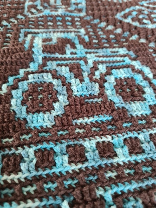 Nadelstärke 3,5 gehäkelt und hat die Maße 88x68cm erreicht.