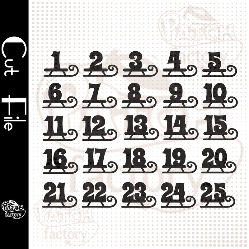 Plotterdatei Adventskalenderzahlen "Schlitten"
