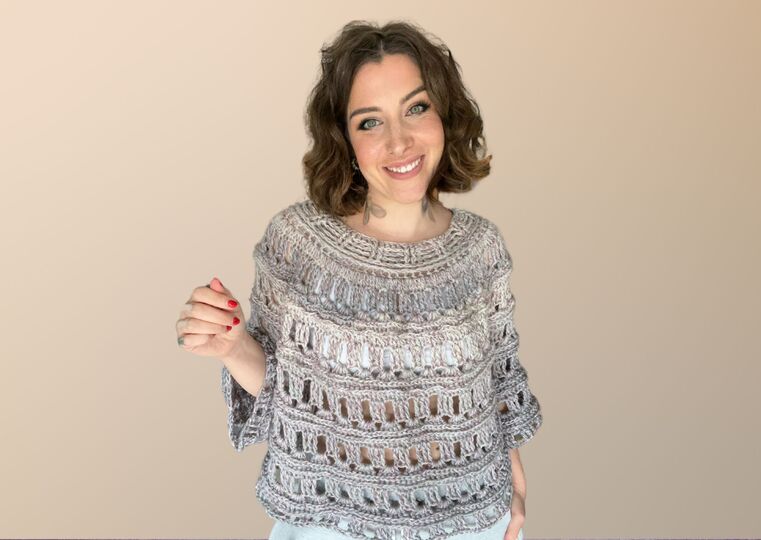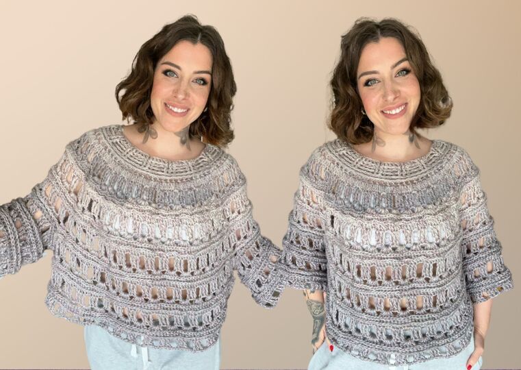 Der Pulli FLUFFY wird in Einheitsgröße gehäkelt.