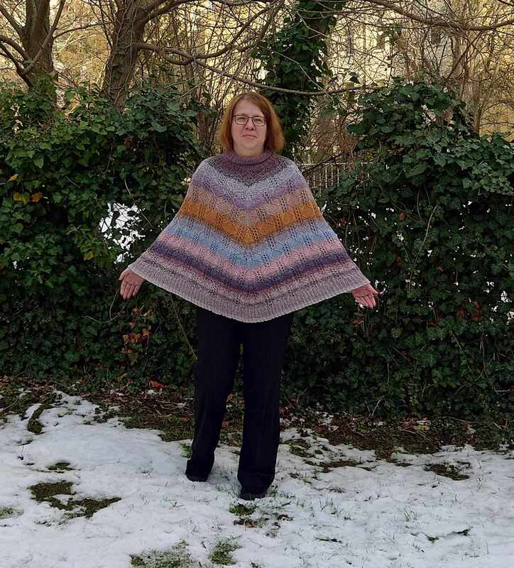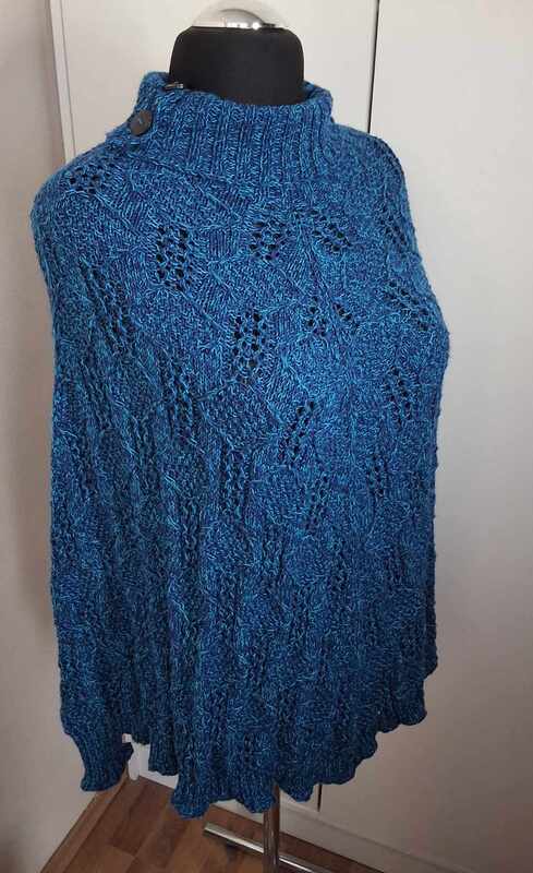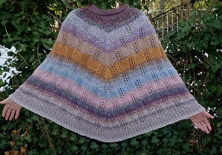 Dieser wunderschöne Poncho (mit wahlweise angestrickten Ärmelbündchen) bezaubert mit einem Hauch von Extravaganz. Durch Deine Woll-Auswahl entsteht ein luxuriös wirkender Glitzer-Poncho oder ein robustes Kleidungsstück für die kalten Tage im Herbst, Winter oder Frühling. Du kannst aber auch einen leichten und dennoch wärmenden Poncho stricken, der als Überwurf nicht nur im Herbst oder Frühling wärmt, sondern auch in kühleren Abenden den nächsten Sommer ergänzt.