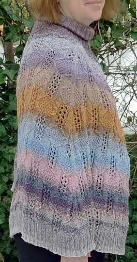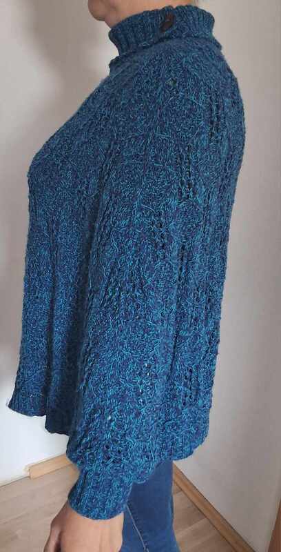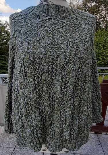 Der Pullover ist mit einer Maschenprobe auf jede Größe umwandelbar, gerechnet werden muß nur bei ganz kleinen Größen, wie z.B. für Kleinkinder.