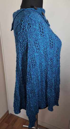 Die Anleitung beinhaltet einen ausführlichen schriftlichen Teil und eine Strickschrift mit Legende für ein Viertel. In der Anleitung ist genau erklärt, wie Du aus einem Viertel vier machst und wie Du anstelle von Armbündchen Seitenschlitze herstellst.