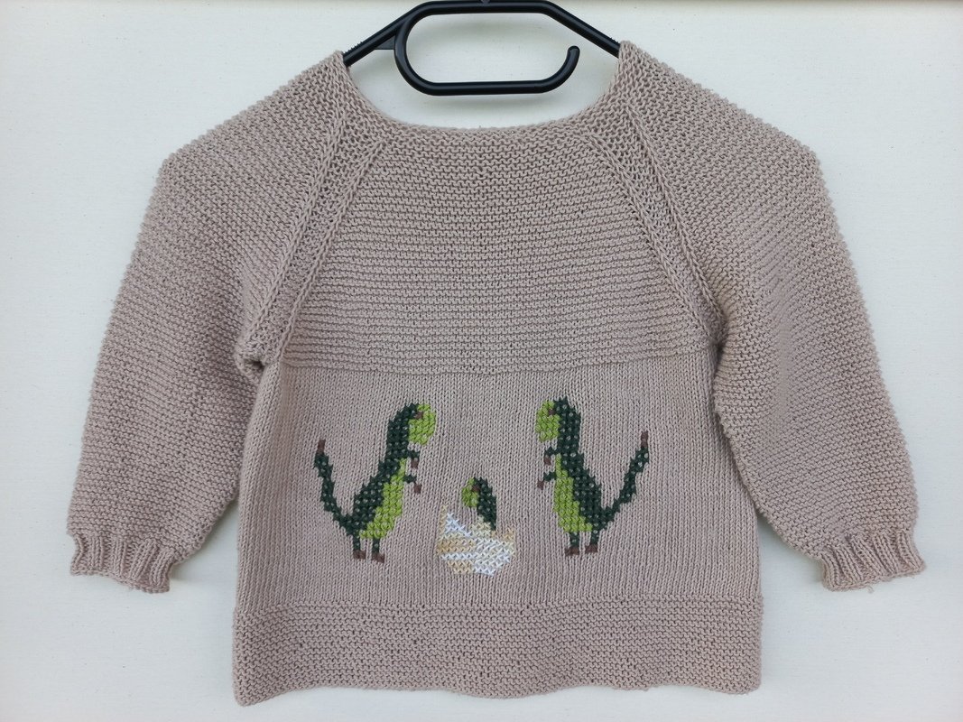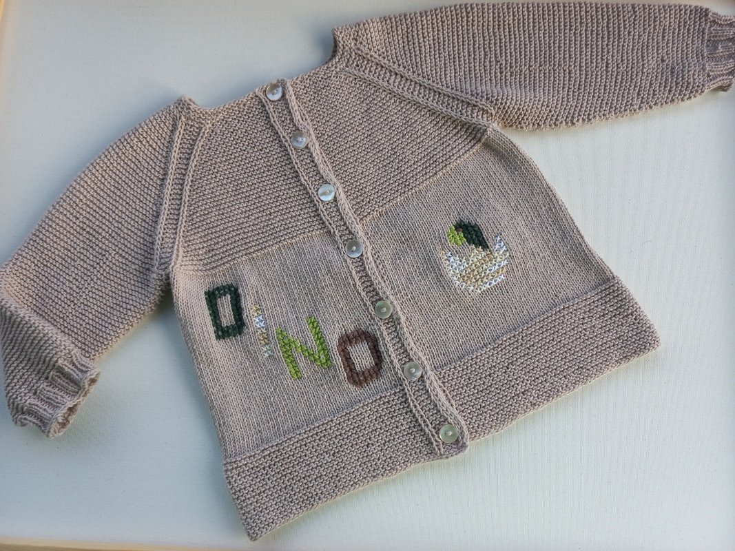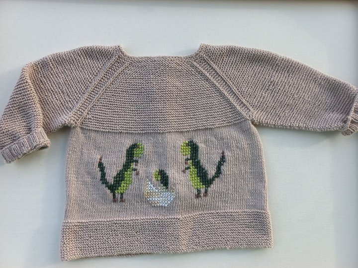 Die Kinderjacke "DINO" ist der Renner für alle Dino-Freunde unter den Kids. Die Jacke ist in ganz einfachem Muster in Raglanstrickweise von oben nach unten gestrickt mit schönem Muster am Raglan.